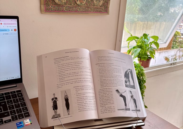 O curso é inspirado pela filosofia do yoga e pela clareza da educação: o conteúdo é extenso, mas aprendemos com calma, de forma progressiva, com espaço para trocas e muita prática.